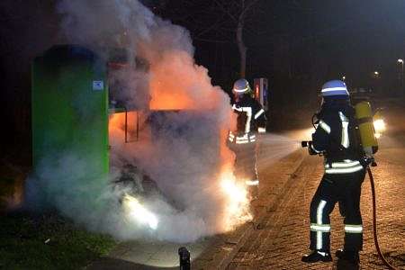 Brennender Altkleidercontainer in Tidofeld