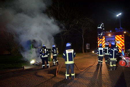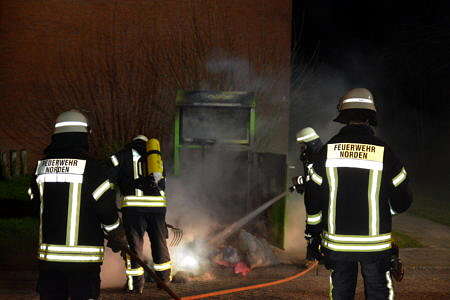 In der Nacht zu Sonntag brannte im Norder Ortsteil Tidofeld ein Altkleidercontainer. Gegen 1 Uhr wurden die Freiwillige Feuerwehr Norden sowie die Polizei in die Rheinstraße alarmiert. Die Feuerwehr brach den Container auf und löschte den Inhalt unter Atemschutz ab.