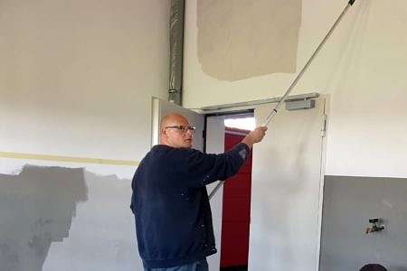 Der Neubau des Feuerwehrhauses im Norder Ortsteil Leybuchtpolder schreitet zügig voran. Damit es noch etwas zügiger geht leisten die Kameraden und Kameradin des IV. Zuges der Freiwilligen Feuerwehr Norden auch einiges an Eigenleistung. Während bereits vor der Grundsteinlegung vorbereitende Maßnahmen in Form von Baumfällarbeiten geleistet wurden, haben heute die Einsatzkräfte bei den Malerarbeiten unterstützt. Mehrere Räume in dem zukünftigen Domizil wurden gestrichen. Natürlich wurde dabei in Zeiten des Corona-Virus der entsprechende Sicherheitsabstand eingehalten um die Ansteckungsgefahr innerhalb der Wehr auf ein Minimum zu reduzieren.