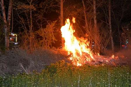 Eine Totholzhecke brannte in der Nacht zu Sonntag im Norder Ortsteil Bargebur. Um kurz nach 1 Uhr wurde das Feuer im Ölmühlenweg gemeldet. Die Freiwillige Feuerwehr Norden sowie die Polizei rückten darufhin aus. Das Feuer brannte auf einer Länge von mehreren Metern in einem Garten. Die Flammen schlugen dabei hoch in die Kronen nahestehender Bäume. Die Feuerwehr konnte das Feuer zügig mit einem Rohr löschen. Nach einer Stunde war der Einsatz beendet.