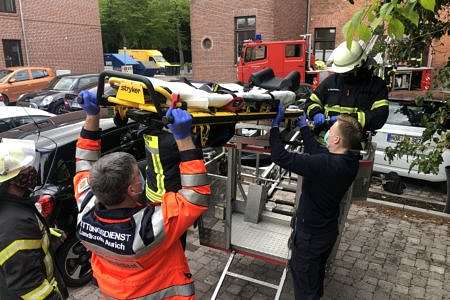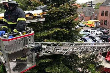 Bei einem Patiententransport mussten die Einsatzkräfte der Freiwilligen Feuerwehr Norden am Mittwochvormittag Geschick und Fingerspitzengefühl unter Beweis stellen. In der Klosterstraße in der Norder Innenstadt war ein Senior in seinem Haus gestürzt. Der Rettungsdienst ging von einer Rückenverletzung aus, sodass ein schonender Transport erforderlich war. Da der ältere Mann jedoch im Dachgeschoss seines Hauses verunfallt war, gestaltete sich dies als besondere Herausforderung.