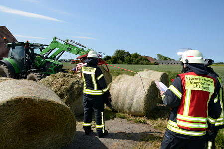 Eine drohende Heuselbstentzündung hat Dienstagnachmittag die Freiwillige Feuerwehr Norden bis in den Abend hinein beschäftigt. In einer Scheune in der Straße Hohe Plate hatten zahlreiche Heurundballen eine kritische Temperatur erreicht und drohten in Brand zu geraten. Der Landwirt hatte zuvor typischen Geruch für eine Selbstentzündung festgestellt und die Feuerwehr gerufen.
