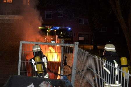 Ein Müllcontainer brannte in der Nacht zu Sonntag in der Großen Lohne. Gegen 1.15 Uhr hatte ein Anwohner das Feuer entdeckt, den Notruf gewählt und eigene Löschversuche unternommen. Die Freiwillige Feuerwehr Norden konnten ein Übergreifen auf weitere Container sowie ein Nebengebäude verhindern.