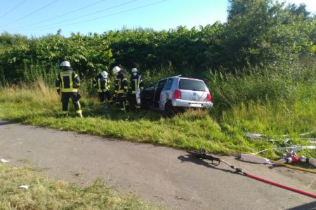 Zu einem schweren Verkehrsunfall im Bereich der Kreuzung Osterstraße/Umgehungsstraße ist am Mittwochnachmittag die Freiwillige Feuerwehr Norden alarmiert worden. In der Alarmmeldung hieß es zunächst dass eine Person eingeklemmt sei. Vor Ort stellte sich die Lage allerdings etwas anders dar. Ein LKW war mit einem PKW zusammengestoßen, der PKW war dabei in einen Graben geraten. Die Person in dem PKW war nicht eingeklemmt und ansprechbar. Gemeinsam mit Rettungsdienst und Notarzt konnte die Person durch die Fahrertür aus dem PKW befreit und in ein Krankenhaus gebracht werden. Ein bereits im Anflug befindlicher Rettungshubschrauber kam nicht mehr zum Einsatz. Die Einsatzkräfte der Feuerwehr stellten den Brandschutz sicher und unterstützten bei den Aufräumarbeiten. Außerdem kümmerte sich ein Mitglied des Kriseninterventionsteams (KIT) der Norder Wehr im Rahmen der psychosozialen Notfallversorgung um den LKW-Fahrer. Die Umgehungsstraße musste für die Zeit des Einsatzes komplett gesperrt werden. Neben Feuerwehr und Rettungsdienst waren auch zwei Streifenwagenbesatzungen der Polizei Norden im Einsatz.