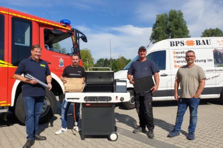 Die Firma Siebels und die Firma BPS-Bau haben bei einer Facebookaktion (Corona-Helden) einen Grill verlost. Eine Mitbürgerin hat die Freiwillige Feuerwehr Norden unter diesem Beitrag vorgeschlagen. Norbert Harms (Siebels) und Stefan Klaassen (BPS-Bau) haben alle Vorschläge in gelesen und sich letztendlich dafür entschieden den Grill im Wert von 500 Euro nicht einer Person, sondern der Freiwilligen Feuerwehr Norden zu spenden. Donnerstag wurde der Grill an den Stadtbrandmeister Thomas Kettler übergeben. Für den nächsten möglichen Tag der offenen Tür wurden noch 500 Würste als Spende zugesichert. Diese werden dann von Norbert Harms persönlich auf dem neuen Grill zubereitet.
