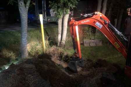 Im Nahbereich der Schadstelle konnte ein zündfähiges Gas-Luftgemisch nachgewiesen werden. Mit einem leistungsstarken Lüfter verdünnte die Feuerwehr das Gemisch. Der Energieversorger sperrte die Gasleitung ab, worauf kein weiteres Gas austrat. Einige Haushalte bekamen dadurch kein Gas mehr geliefert. Noch in der Nacht rückte ein Bautrupp mit einem Bagger an, um die vermutlich durch Baumwurzeln oder natürliche Bodensetzung beschädigte Leitung freizulegen und zu reparieren. Als die Gefahr gegen 23 Uhr gebannt war, rückte die Feuerwehr ab.