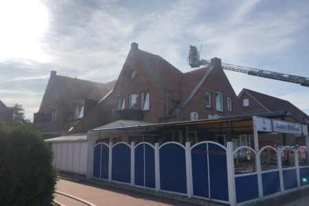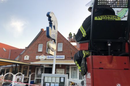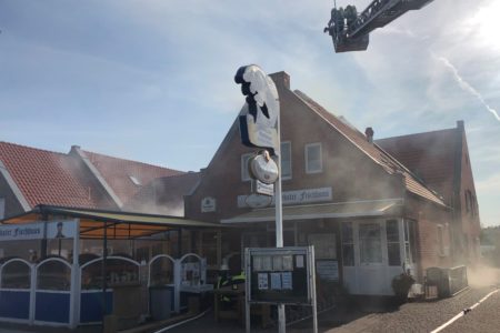 Ein ausgedehnter Küchenbrand hat am Sonntagnachmittag ein Fischrestaurant mitten im Touristenort Norddeich zerstört. Das Feuer breitete sich durch die Abluftanlage aus und setzte schließlich auch den Dachstuhl des Gebäudes in Brand. Gegen 16.20 Uhr stand plötzlich der Kochbereich in der zum Gästebereich offenen Küche in Brand. Laut dem Betreiber hatte sich Fett entzündet. Die Mitarbeiter setzten einen Notruf ab und gingen sofort mit Feuerlöschern gegen die Flammen vor. Andere Mitarbeiter evakuierten das Restaurant und leiteten die Gäste ins Freie. In dem Restaurant herrschte zu diesem Zeitpunkt reger Betrieb.