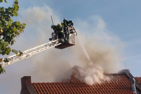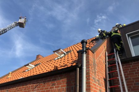 Das Feuer in der Küche war schnell unter Kontrolle. Dadurch ließ die Rauchentwicklung jedoch zügig nach. Dennoch erwarteten die Feuerwehrleute eine Brandausbreitung über die Abluftrohre in das Dachgeschoss. Daher öffneten weitere Atemschutzgeräteträger das Dach und leiteten auch hier einen Innenangriff ein. Hierzu gingen sie über die Drehleiter und tragbare Leitern vor. Währenddessen brannte die Dachhaut durch und es qualmte wieder sehr intensiv. Das Feuer hatte sich tatsächlich auf den Spitzenboden ausgebreitet. Im Innengriff konnte das Feuer auch in dem engen Dachboden zügig bekämpft werden. Durch das behutsame Vorgehen der Feuerwehrleute und den sparsamen Umgang mit Löschwasser, blieben alle Wohnungen nahezu unversehrt und bewohnbar. Auch die Wohnungen über dem Restaurant, konnte am Abend wieder bezogen werden, obwohl es unter und über ihr gebrannt hatte.