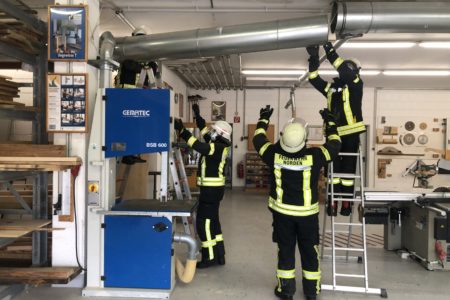 Mehrere Stunden hat ein Schwelbrand am Mittwoch die Freiwillige Feuerwehr Norden beschäftigt. Gegen 14.45 Uhr hatten Mitarbeiter einer Tischlerei im Gewerbegebiet Leegemoor in Norden einen Notruf abgesetzt. Zuvor war es in einer Absauganlage für Sägespäne zu einer Verstopfung und infolgedessen zu einem Schwelbrand bekommen. Die Mitarbeiter hatten diesen zunächst direkt an der Maschine selbst löschen können. Sie forderten die Feuerwehr jedoch vorsichtshalber zur Nachkontrolle an. Wie richtig diese Entscheidung war, stellte sich wenig später heraus.