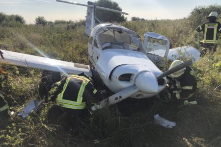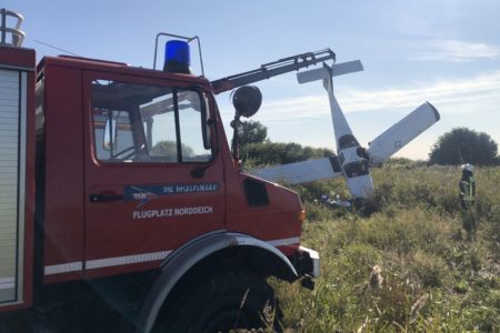Ein Kleinflugzeug ist am Freitag gegen 14.16 Uhr unmittelbar nach dem Start auf dem Flugplatz Norddeich abgestürzt. Das Luftfahrzeug überschlug sich auf einer Wiese und kam kopfüber schwer beschädigt zum Liegen. An Bord der Maschine vom Typ PA 38 befanden sich ein Mann und eine Frau. Sie wurden nur leicht verletzt. Das Privatflugzeug war zu einem Rundflug abgehoben.