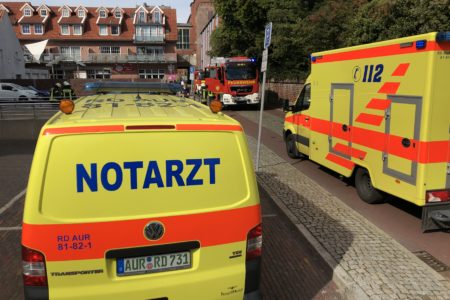 Ein junges Pärchen leistete Erste Hilfe und setzte einen Notruf ab. Während der Rettungsdienst und eine Notärztin die Dame versorgten, hob die Freiwillige Feuerwehr Norden den Wagen mit einem Hydraulikheber an. Binnen weniger Minuten war die Frau befreit und konnte in ein Krankenhaus transportiert werden.
