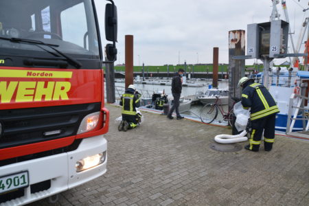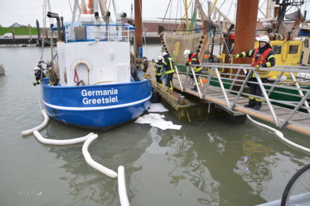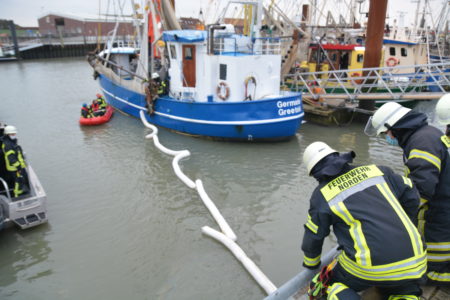Im Norddeicher Osthafen ist es am Mittwochmorgen zu einer Gewässerverunreinigung gekommen. Mitarbeiter des Hafenbetreibers NPORTS hatten dort einen deutlich sichtbaren Ölfilm entdeckt und die Freiwillige Feuerwehr Norden benachrichtigt. Die Einsatzkräfte legten saugfähige Ölsperren aus und trieben das Öl damit zusammen. Rundweg 70 Quadratmeter betrug die verschmutzte Fläche.