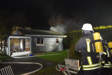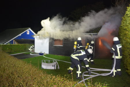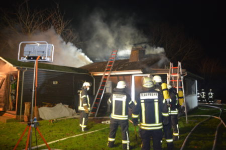 In der Norder Kleingartenanlage „Auerhahnsiedlung“ ist in der Nacht zu Dienstag ein Wochenendhaus vollständig ausgebrannt. Gegen 2.15 Uhr hatte ein Anwohner Rauch aus der Siedlung aufsteigen sehen und den Notruf gewählt. Wenig später entdeckten Polizei und Feuerwehr das brennende Haus im Ortsteil Süderneuland I. Es befindet sich fast am Ende der Anlage und grenzt direkt an das Norder Tief. Für die Freiwillige Feuerwehr Norden gestaltete sich die Anfahrt durch die Raiffeisenstraße alles andere als einfach. Zunächst versperrte ein Sperrpoller die Fahrbahn. Nachdem dieser umgelegt war, ging es weiter über eine historische Brücke, die schwere Fahrzeuge nur in absoluten Ausnahmen passieren dürfen. In der Auerhahnsiedlung selbst führte dann eine zuletzt nur noch drei Meter breite Straße zum Brandort.