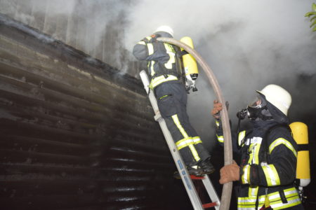 Auch wenn das Feuer zügig unter Kontrolle gebracht werden konnte, zogen sich die Nachlöscharbeiten bis zirka 6 Uhr hin. Glutnester hatten sich an vielen Stellen in die hölzerne Konstruktion gefressen und mussten teilweise mit Motorsägen freigelegt werden. Die Polizei hat noch in der Nacht die Ermittlungen zur Brandursache aufgenommen. Ein Rettungswagen stand zum Schutze der rund 40 Feuerwehrfrauen und -männer am Rande in Bereitstellung.