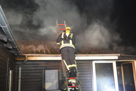 Während dichter Qualm und Flammen aus dem Gebäude schlugen, gingen Atemschutzgeräteträger ins Innere vor, um nach Personen zu suchen sowie den Brand zu bekämpfen. Anfangs war nicht bekannt, ob das Häuschen derzeit bewohnt wurde. Die Einsatzkräfte bauten parallel einen umfassenden Löschangriff, zahlreiches Beleuchtungsgerät sowie eine Wasserversorgung auf. Hier kam der Norder Feuerwehr eine Neuanschaffung zu Gute. Mit Hilfe eines speziellen Schwimmsaugkorbs, der die Wasserentnahme aus flachen Gewässern ermöglicht, konnte Löschwasser aus einem Graben direkt vor dem brennenden Haus entnommen werden. Dies ersparte einen personal- und zeitintensiven Aufbau einer langen Förderstrecke zum nächsten Hydranten. Da es zu einer starken Rauchentwicklung kam welche in Richtung innenstadt zog, löste die Leitstelle Ostfriesland das Bevölkerungswarnsystem Katwarn aus.