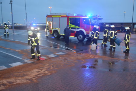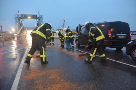 Am Montagnachmittag wurde die Umweltgruppe der Freiwilligen Feuerwehr Norden zum Norderney-Fähranleger im Hafen Norddeich gerufen. Auf dem dortigen Abfertigungsbereich für PKW hatte ein bislang unbekanntes Fahrzeug Betriebsmittel verloren welches sich durch den einsetzenden Regen verteilte. Die Einsatzkräfte der Norder Wehr nahmen die Betriebsstoffe mit Bindemittel auf. Die Polizei hat Ermittlungen zum Verursacher aufgenommen.
