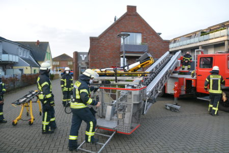 Nach einem Glätteunfall besonderer Art, sind am Sonntagmorgen die Freiwillige Feuerwehr Norden und der Rettungsdienst nach Norddeich ausgerückt. Eine Frau lag mit einer schweren Beinverletzung in ihrer Wohnung im zweiten Obergeschoss und musste schonend abtransportiert werden. Die Seniorin war zuvor auf ihrem vereisten Balkon gestürzt und hatte sich dabei die Verletzung zugezogen. Unter großer Anstrengung hatte sie es noch in die Wohnung geschafft und dort mit ihrem Telefon einen Notruf abzusetzen. Ihre Wohnungstür konnte sie den Rettern jedoch nicht mehr öffnen. Den Feuerwehrleuten gelang es jedoch binnen weniger Minuten die Tür zu öffnen. Nachdem der Rettungsdienst die Dame transportbereit gemacht hatte, ging es für sie liegend mit Hilfe der Drehleiter zu Boden zum Rettungswagen. Jedoch mussten die Einsatzkräfte den Balkon erst mit Streusalz auftauen, damit sie die Krankentrage mit der Patientin dort gefahrlos auf den Korb der Drehleiter heben konnten.