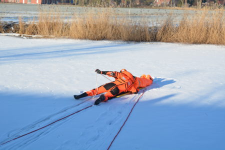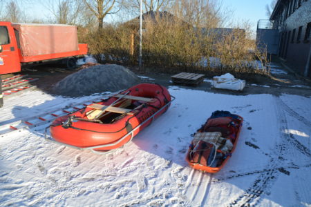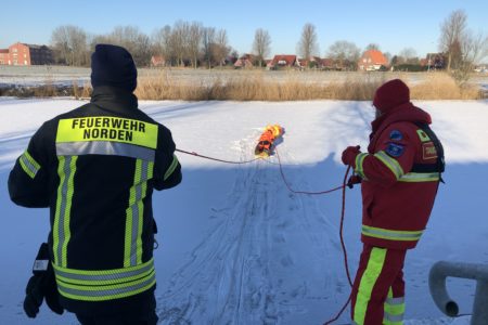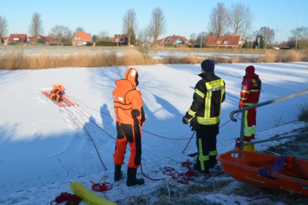 Nur selten friert es in Ostfriesland so lange und intensiv, wie diesen Winter. Entsprechend der Minusgrade gefrieren sämtliche Gewässer nach und nach zu. Damit steigt auch die Wahrscheinlichkeit, dass Menschen die diese Eisflächen betreten, ins Eis einbrechen und damit in Lebensgefahr geraten. Bei derartigen Einsätzen kommt es auf jede Sekunde an. Den in Not geratenen Personen bleibt nicht viel Zeit, um gerettet zu werden. Binnen weniger Augenblicke kühlt der Körper aus und entkräftet. Hinzu kommt der lähmende Schockmoment. Sich selbst mit nasser Kleidung und vielleicht noch schweren Schlittschuhen an den Füßen aus solcher einer brisanten Situation zu retten, ist nahezu unmöglich. Auch Helfer können bei Rettungsaktionen schnell in Gefahr geraten. Das gilt für zufällig anwesende Passanten, aber auch für Einsatzkräfte. Dementsprechend ist für eine erfolgreiche Rettungsaktion eine gute Vorbereitung essentiell wichtig.