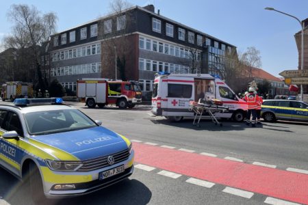 Ein Gasaustritt hat am Montag für einen Großeinsatz von Feuerwehr, Rettungsdienst, Polizei, Deutschen Roten Kreuz und Stadtwerke in Norden gesorgt. Umfangreiche Straßensperrungen und Evakuierungen waren wegen Explosionsgefahr notwendig. Am benachbarten Ulrichsgymnasium mussten Schüler ihre Klassenräume verlassen und einige sogar ihre Abiturprüfung unterbrechen.