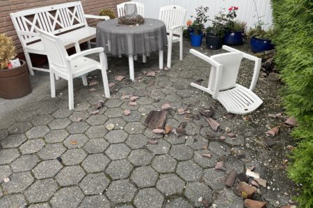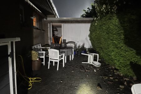 Ein schweres Unwetter ist am späten Freitagabend über Ostfriesland und auch die Stadt Norden hinweggezogen. Starkregen mit bis zu 26 Litern pro Quadratmetern in der Norder Innenstadt, Sturmböen und Gewitter waren die heftigen Begleiterscheinungen des Naturschauspiels. In einem Haus in der Straße Selden Rüst war ein Blitz eingeschlagen. Der Schornstein wurde regelrecht zersprengt. Trümmerteile lagen im ganzen Garten verteilt. Auch die Dachhaut wurde an mehreren Stellen aufgerissen. Im Gebäude wurde die Elektroinstallation beschädigt. Die Freiwillige Feuerwehr Norden rückte aus und kontrollierte das Gebäude. Zu einem Brand war es jedoch nicht gekommen. Der Notdienst der Stadtwerke Norden war ebenfalls vor Ort.