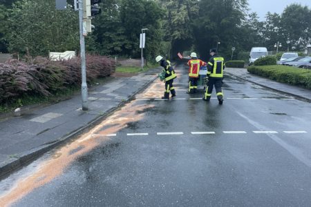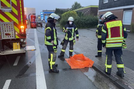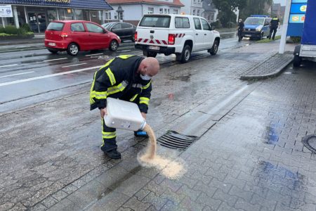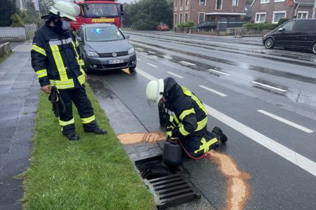 Gegen 20.15 Uhr wurde die Freiwillige Feuerwehr Norden alarmiert. Ebenso die Polizei, der städtische Bauhof sowie die Untere Wasserbehörde des Landkreises Aurich. Die Feuerwehr sicherte zunächst die Gefahrenstellen ab und schützte diverse Einläufe der Abwasserkanalisation. Die Fahrbahnbereiche, die besonders schmierig waren, streuten die Feuerwehrleute mit Bindemittel ab. In den Kurvenbereichen hatte sich das Motorenöl durch Regen derart verteilt, dass eine erhebliche Rutschgefahr für Zweiradfahrer bestand. Aufgrund der Länge der Ölspur wurde eine Fachfirma mit der Reinigung der Verkehrsflächen beauftragt. Mit einem Spezialfahrzeug konnte wieder ein verkehrssicherer Zustand hergestellt werde. Gegen 23 Uhr war der Umwelteinsatz für alle Beteiligten beendet.
