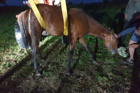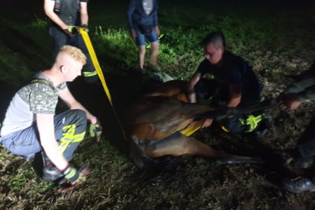 Am Montagabend wurde die Freiwillige Feuerwehr Norden zur Unterstützung bei einer Tierrettung auf einen Reiterhof im Ortsteil Westermarsch I gerufen. Vor Ort wurden die Halter eines Pferdes und ein Tierarzt mit Tierhebegeschirr und Personal unterstützt. Das Pferd „Elli“ wurde auf einer Weide liegend entdeckt, es konnte aus eigener Kraft nicht mehr auf die Beine kommen. Mehrfach wurde dann versucht das Pferd mit Hilfe eines Frontladers aufzuhelfen, was auch zeitweise gelang. Letztendlich wurde das Pferd auf einem Sandplatz abgelegt und wurde von einem Tierarzt weiter betreut.