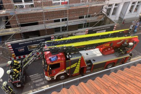 Gleich zwei Einsätze hat die Freiwillige Feuerwehr Norden am Montagnachmittag zeitgleich abgearbeitet. Um kurz nach 15 Uhr löste die automatische Brandmeldeanlage der Conerus-Schule Alarm aus. Die Norder Feuerwehr machte sich umgehend mit zwei Löschfahrzeugen auf dem Weg. Vor Ort empfing der Hausmeister die Einsatzkräfte und teilte mit, dass der Alarm versehentlich bei Handwerkerarbeiten ausgelöst wurde. In dem Moment rief die Leitstelle Ostfriesland per Funk zu einem weiteren Einsatz. Das zweite Löschfahrzeug fuhr von der ersten Einsatzstelle direkt weiter zum Neuen Weg. Dort piepte ein Heimrauchmelder im Dachgeschoss in einem Wohn- und Geschäftshaus.
