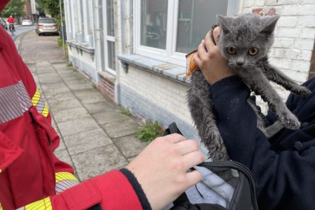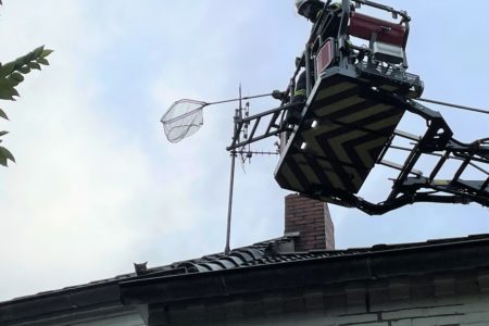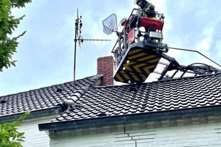 Der erst Ausflug einer jungen Katze im Freien endete am Dienstag mit einem Einsatz für die Freiwillige Feuerwehr Norden. Das Tier war am Vorabend durch ein Dachfenster auf das Hausdach seiner Besitzer gesprungen. Dort kletterte die erst fünf Monate alte Samtpfote auf die Dachspitze. Hier verließ sie dann jedoch der Mut. Die Besitzerin bat die Feuerwehr nach etwas Wartezeit gegen Mitternacht um Hilfe. Nach kurzer Erkundung entschied man sich jedoch, das Tier erst einmal in Ruhe zu lassen und sich selbst einen Weg suchen zulassen. Am nächsten Morgen saß „Minisch“ immer noch auf dem Dach. Die ganze Nacht hat sie immer wieder gerufen. Das konnte die Besitzerin nicht länger ertragen. Sie bat die Feuerwehr erneut um Hilfe und sicherte die Übernahme der Kosten zu. Die Freiwillige Feuerwehr Norden rückte daraufhin mit ihrer Drehleiter und einem Löschfahrzeug an.