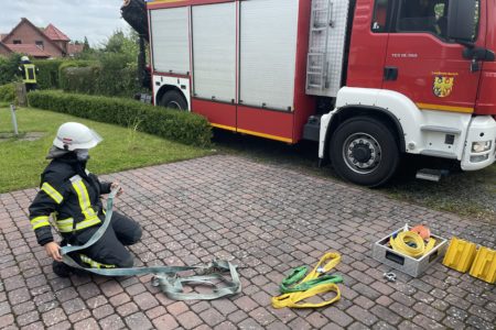 Die Feuerwehrleuten mussten sich mit ihrem Rüstwagen-Kran erstmal müßig den Weg durch die enge Wochenendsiedlung bannen. Hierbei mussten sie auch eine baufällige Brücke überqueren, die schon seit Jahren für schwere Fahrzeuge gesperrt ist und bereits mehrfach für Probleme bei Feuerwehreinsätzen in dem Bereich sorgte. Mit der Seilwinde des Rüstwagens konnte der Pkw letztlich von der Uferkante weggezogen werden. An dem Wagen entstand erheblicher Sachschaden.