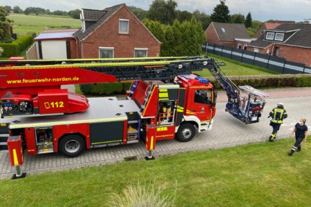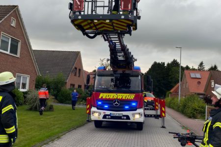 Am Mittwochabend benötigte der Rettungsdienst mit Notarzt die Unterstützung der Norder Drehleiter bei einem Patiententransport in Rechtsupweg (Samtgemeinde Brookmerland). In der dortigen Mühlenstraße musste ein Patient über den Korb der Drehleiter aus dem ersten Obergeschoss eines Einfamilienhauses in den bereitgestellten Rettungswagen transportiert werden da der Weg über das Treppenhaus nicht möglich war. Für die Zeit des Einsatzes musste die Mühlenstraße kurzfristig gesperrt werden.