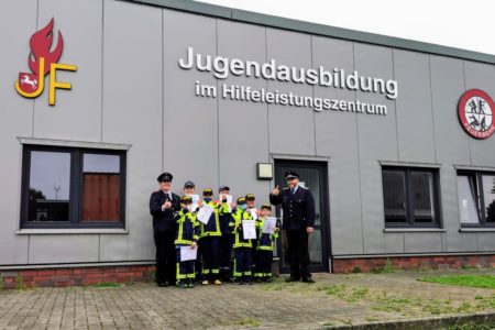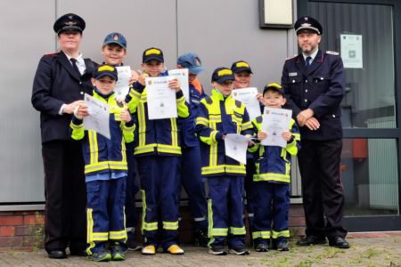 Am Sonnabend, den 11.09.2021, machten sich einige Mitglieder der Kinderfeuerwehr Norden mit ihren Betreuern nach Upgant-Schott auf den Weg, um ihre erste Auszeichnung in der Feuerwehr abzulegen. Der Brandfloh beinhaltet dabei Aufgaben, welche spielerisch auf Brandschutzthemen, erste Hilfe sowie Teamfähigkeit eingehen. Da bedingt durch die Pandemie die Abnahmen im letzten Jahr ausfallen mussten, durften nun Mitglieder, welche bereits in die Jugendfeuerwehr übergetreten sind ihre Prüfung ablegen. Alle Teilnehmer erledigten die gestellten Aufgaben mit Bravour und durften anschließend ihre Anstecknadel sowie Teilnehmerurkunde in Empfang nehmen.