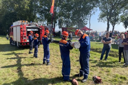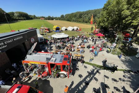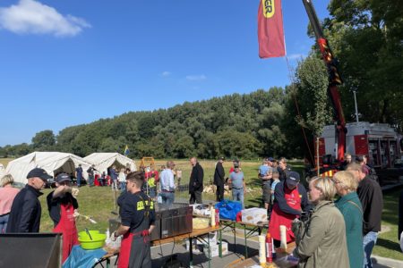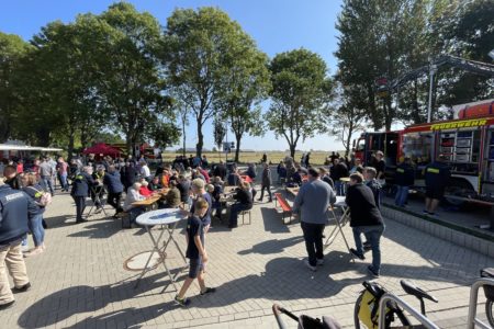 Am 05.09.2021 fand im Feuerwehrhaus Leybuchtpolder ein Tag der offenen Tür statt. Pandemiebedingt konnte das Gebäude nach seiner Übergabe im Juni 2020 noch nicht der Öffentlichkeit vorgestellt werden. Dies wurde nun nachgeholt. Die Jugendfeuerwehr nutzte die Gelegenheit für ein kleines Zeltlager, um neugeworbene Jugendlichen aus dem Ortsteil in ihre Gemeinschaft aufzunehmen und zu integrieren. Den ganzen Sonntag strömten zahlreiche Besucher zu dem städtischen Gebäude und besichtigten es. Auch das in Leybuchtpolder stationierte Hilfeleistungslöschfahrzeug (HLF 10) sowie das Mehrzweckfahrzeug (MZF) standen im Fokus des Besucherinteresses. Beide Fahrzeuge waren ebenfalls im vergangen Jahr neu beschafft worden. Fahrzeuge vom Hauptstandort Hilfeleistungszentrum sowie die Oldie-Gruppe ergänzten die Fahrzeugausstellung. Auch das Stadtorchester musizierte am Nachmittag. Aus Sicht der Feuerwehr eine rundum gelungene Veranstaltung, welche nach der langen Zeit der strengen Corona-Schutzmaßnahmen sowohl die Gäste als auch die Gastgeber bei bestem Wetter genossen haben.