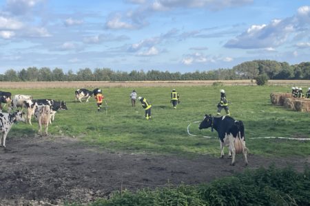 Nachdem alle Sicherheitsvorkehrungen getroffen wurden, konnte der Landwirt und sein Auszubildender die Quaderballen mit zwei Radladern ins Freie fahren. Schnell kamen deutlich sichtbare Verfärbungen an den dampfenden Ballen zum Vorschein. Alle Ballen wurden unter den neugierigen Blicken einer Kuhherde auf einer Weide abgelegt. Messungen ergaben Temperaturen von bis zu 85 Grad im Inneren einiger Ballen. Durch den fast fünf Stunden dauernden Einsatz und das Ausfahren der rundweg 120 Ballen, konnte ein Großbrand auf dem landwirtschaftlichen Anwesen am Altendeichsweg verhindert werden.