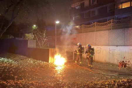 Am späten Dienstagabend brannte am Jan-ten-Doornkaat-Koolman-Platz ein an einer Straßenlaterne montierter Mülleimer. Ein Passant hatte das Feuer neben der Zufahrt zur dortigen Tiefgarage gegen 21.10 Uhr entdeckt und einen Notruf abgesetzt. Die Alarmierung erreichte die Freiwillige Feuerwehr Norden bei ihrem letzten offiziellen Dienstabend in diesem Jahr im Hilfeleistungszentrum. Zwei Löschfahrzeuge konnten so unmittelbar ausrücken. Das Feuer hatten die Einsatzkräfte schnell gelöscht. Neben der Feuerwehr waren auch die Polizei und der Notdienst der Norder Stadtwerke vor Ort.