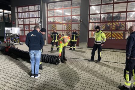 Beide Parteien interessierten sich für einsatztaktische Grundsätze sowie Ausstattung des anderen. Nach dem theoretischen Vortrag präsentierte die Feuerwehr den Notdienstmitarbeitern unter anderem explosionsgeschützte Be- und Entlüftungstechnik sowie Gasmessequipment, welches bei Gasaustritten zum Einsatz kommt.