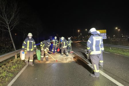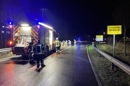 Eine Ölverschmutzung hat die Freiwillige Feuerwehr Norden Mittwochnacht auf der B72 in Höhe der Inselparkplätze in Norddeich entfernt. Ein Pkw war dort zuvor mit einer Panne liegengeblieben und hatte Öl verloren. Der Fahrer beauftragte darauf einen Abschleppunternehmer mit dem Abtransport des Fahrzeugs und dem Beseitigen des ausgelaufenen Öls. Die Polizei stellte jedoch später fest, dass die Beseitigung der Ölverschmutzung nicht vollständig erfolgt war und eine Gefahr für Verkehrsteilnehmer besteht. Die Feuerwehr wurde deshalb um 23.20 Uhr alarmiert. Sie band den Schmierfilm mit Bindemittel ab und reinigte die Fahrbahn vollständig.
