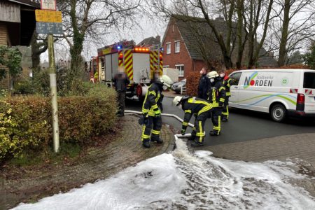 In einem Wohnhaus in der Friesenstraße in Norden ist es am Mittwoch zu einem massiven Wasserschaden gekommen. Nachbarn hatten in der Mittagszeit bemerkt, dass Wasser aus dem Gebäude lief und die Eigentümer informiert. Diese renovieren das Gebäude gerade. Aufgrund des Schadensausmaßes wurde die Freiwillige Feuerwehr Norden sowie der Bereitschaftsdienst der Stadtwerke gerufen. Das gesamte Gebäude glich einer Tropfsteinhöhle. Nachdem es im Dachgeschoss vermutlich durch Frost zu einem Leitungsschaden gekommen war, suchte sich das Wasser seinen Weg. Der Keller war komplett vollgelaufen. Da dort auch der Stromhausanschlusskasten mit den Hauptsicherungen geflutet wurde, stand das Wasser im Keller unter Strom hatte sich durch den Kurzschluss erhitzt. Nachdem die Mitarbeiter der Stadtwerke den Strom und Wasser abgestellt hatten, konnten die Einsatzkräfte der Feuerwehr beginnen den Keller auszupumpen. Nach rund eineinhalb Stunden konnte die Feuerwehr die Einsatzstelle an die Eigentümer übergeben.