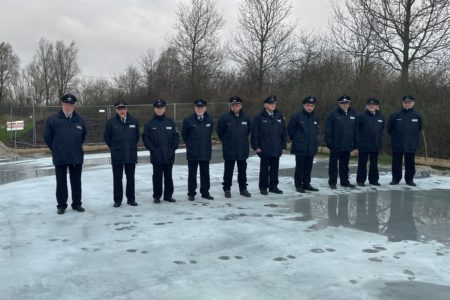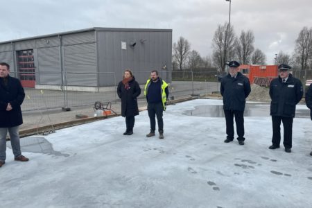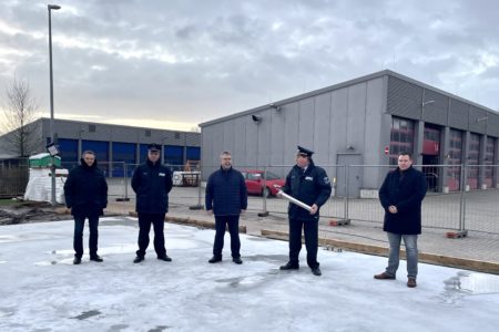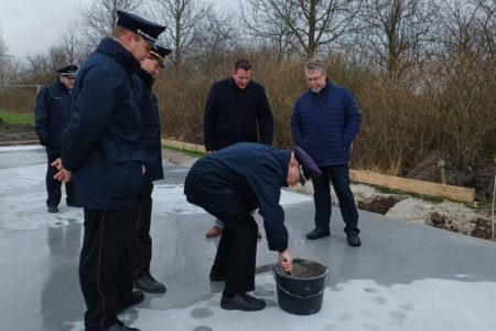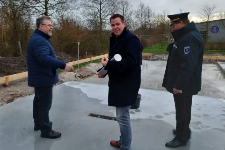 Für die Nachwelt wurde in die Bodenplatte eine Zeitkapsel eingemauert. Diese füllten der Stadtbrandmeister und sein Stellvertreter Thomas Weege mit aktuellen Tageszeitungen, einer Bauzeichnung sowie einer Flasche „Norder Löschwasser“. Das Loch mit der Edelstahlröhre verfüllten Bürgermeister, Wehrführung sowie Oldie-Kommandant Wilhelm Schmeding und der Vorsitzende des Feuerwehr- und Ordnungsausschusses Wolfgang Hinrichs mit Mörtel. Pandemiebedingt konnten an der Feierlichkeit nur wenige Personen teilnehmen. Die Oldie-Gruppe selbst trat jedoch zum Festakt an und zeigte sich über den Baubeginn sichtlich erfreut. Im Sommer soll der rund 300 Quadratmeter große Bau bezugsbereit sein. Dann können die Oldies endlich vom ehemaligen Doornkaat-Gelände zu ihren Kameraden zum Hilfeleistungszentrum umziehen.