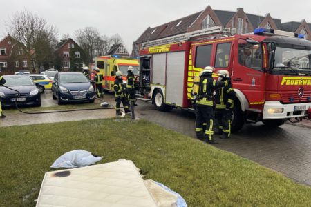 Mitarbeiter eines angegliederten Pflegeheims wurden ebenfalls auf den schrillen Alarmton aufmerksam und sahen darauf die Flammen auf dem Balkon. Schnell eilten sie der Frau zur Hilfe und führten sie ins Freie. Die alarmierte Freiwillige Feuerwehr Norden lüftete die Wohnung, brachte die angebrannte Matratze ins Freie und löschte sie dort nach. Die Seniorin kam vorsorglich mit einem Rettungswagen ins Krankenhaus.
