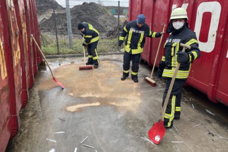 Die Feuerwehr legte in Absprache mit der Unteren Wasserbehörde des Landkreises Aurich mehrere Ölsperren in dem Gewässer aus. Hierbei setzte die Feuerwehr auch ein Boot ein. Das ausgelaufene Öl auf dem Hof banden die Einsatzkräfte mit Bindemittel ab. Anschließend wurde das Granulat aufgenommen und der Entsorgung zugeführt. Die Ölsperren auf dem Kanal werden ein paar Tage darauf belassen, um das Öl aufsaugen.