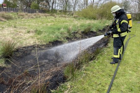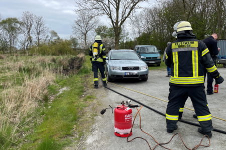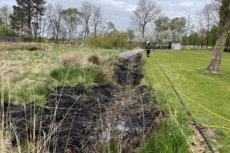 Beim Abflammen von Unkraut ist am Mittwoch in Norddeich ein Graben in Brand geraten. Zwei Männer waren vormittags damit beschäftigt Wildwuchs auf einem Parkplatz mit einem Gasbrenner zu beseitigen. Dabei geriet trockenes Schilf und Gras in dem Graben zwischen zwei Grundstücken an der Norddeicher Straße in Brand. Die Flammen breiteten sich in der trockenen Vegetation schnell auf eine Länge von zirka 20 Metern aus. Während die alarmierte Freiwillige Feuerwehr Norden anrückte, bekämpften die Verursacher das Feuer mit einem Gartenschlauch. Bis zur Ankunft von Feuerwehr und Polizei konnten sie den Brand auch weitestgehend bekämpfen. Die Besatzung eines Löschfahrzeugs wässerte die verbrannte Fläche nochmal nach.