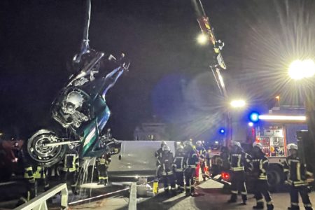 Ein junger Motorradfahrer ist am späten Donnerstagabend alleinbeteiligt mit seinem Zweirad im Norddeicher Osthafen gestürzt und samt dem Krad ins Hafenbecken gefallen. Der Fahrer blieb bei dem Sturz unverletzt und konnte sich aus eigener Kraft aus dem Wasser retten. Das Motorrad versank dagegen in Höhe eines Kutterliegeplatzes.