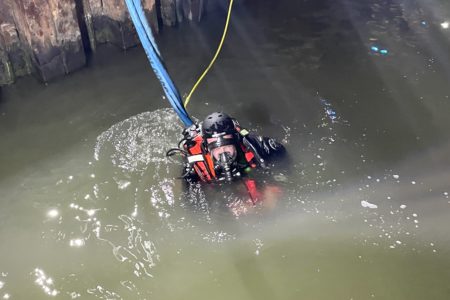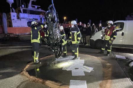 Die Freiwillige Feuerwehr Norden sowie Taucher der DLRG Norden übernahmen gemeinsam die Bergung. Diese gestaltete sich jedoch als nicht ganz so einfach, wie zunächst angenommen. Das Motorrad lag nämlich nicht nur in zirka fünf Metern Tiefe unter Wasser sondern war auch in den butterweichen Schlickboden des Hafens eingesunken. Letztlich gelang es zwei Tauchern Schlingen an dem Fahrzeug zu befestigen, so dass die Feuerwehr es mit ihrem Kran auf die Kaifläche heben konnte. Betriebsstoffe waren nur geringfügig ausgelaufen.