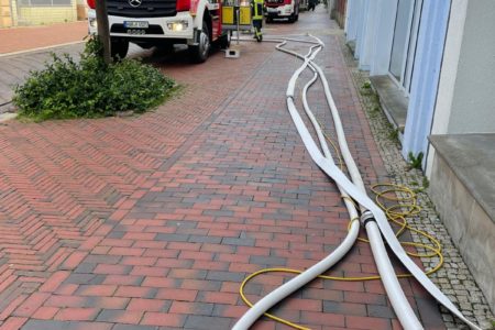 Samstagmorgen wurde die Freiwillige Feuerwehr Norden zu einem Wasserschaden in einem Hotelbetrieb auf dem „Neuen Weg“ gerufen. Ein Defekt an einer Poolanlage im Wellnessbereich flutete den Keller mit der Technik. Nachdem die Stromversorgung sowie die Wasserzufuhr für den Bereich abgestellt war, wurde der Keller sowie der zugehörige Pool mit Tauchpumpen geleert. In Folge des Einsatzes stürzte ein Feuerwehrmann in ein geöffnetes zirka 2,5 Meter tiefes Kellerloch. Sofort wurden ein Rettungswagen sowie Notarzteinsatzfahrzeug nachgefordert, um den schwer verletzten Kameraden zu behandeln. Dieser kam zur Versorgung ins Norder Krankenhaus und wurde später ins Krankenhaus nach Aurich verlegt. Im Anschluss an die Versorgung des Verunfallten wurde der Einsatz abgearbeitet und die Einsatzstelle dem Betreiber übergeben.