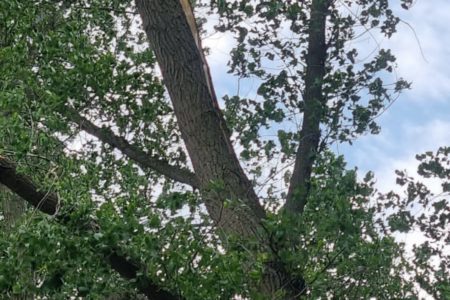 Zur Unterstützung der Technischen Dienste Norden (TDN) musste am Freitagvormittag erneut der IV. Zug der Freiwilligen Feuerwehr Norden vom Standort Leybuchtpolder in die Störtebeker Riede ausrücken. Die TDN hatten die Einsatzkräfte angefordert weil ein Baum im Kronenbereich komplett gespalten war und auf die Straße zu stürzen drohte. Gemeinsam wurde entschieden den Baum aus Sicherheitsgründen komplett zu fällen. Der Baum wurde danach komplett zerlegt und die Einsatzstelle geräumt. Dazu musste die Störtebeker Riede für die Zeit der Fäll- und Aufräumarbeiten komplett gesperrt werden.