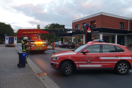 Zur Unterstützung des Rettungsdienstes mit Notarzt bei einer Patientenrettung bzw. Tragehilfe in der Heringstraße wurde am Dienstagabend die Freiwillige Feuerwehr Norden alarmiert. Da die Alarmierung zum Zeitpunkt des regulären Dienstbetriebes erfolgte und sich einige Fahrzeuge auf dem Rückweg von einer Übung befanden konnte der Einsatzort direkt und zügig angefahren werden. Vor Ort musste ein Notfallpatient über den Korb der Drehleiter aus dem 1. Obergeschoss eines Wohn- und Geschäftshauses zum bereitgestellten Rettungswagen transportiert werden. Für die Zeit des Einsatzes musste die Heringstraße komplett gesperrt werden. Angehörige des Patienten wurden durch Mitglieder des PSNV-Teams der Norder Wehr betreut.