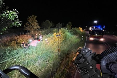 In der Nacht zu Sonntag ereignete sich ein Verkehrsunfall auf der Bundesstraße 72 zwischen Norddeich und Norden. Der verunfallte Insasse wurde durch den Rettungsdienst versorgt und in ein umliegendes Krankenhaus gebracht. Die angerückten Einsatzkräfte der Freiwilligen Feuerwehr Norden stellten den Brandschutz sicher und nahmen die auslaufenden Betriebsstoffe mit Bindemittel und aktiven Ölsperren auf. Ein Abschleppunternehmen hat da Auto geborgen und abtransportiert. Ebenfalls an der Einsatzstelle war die Polizei sowie die Untere Wasserbehörde des Landkreis Aurich, welche am Folgetag die Einsatzstelle nochmals begehen wird. Nach rund zwei Stunden konnte der Einsatz beendet werden.