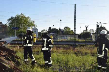 Montagabend wurde der Freiwilligen Feuerwehr Norden ein Kleinbrand im Bereich der Museumseisenbahn in der Nähe vom Norder Bahnhof gemeldet. Ein kleiner Teil eines Haufens mit ausgedienten und morschen Bahnschwellen war in Brand geraten. Ein Trupp unter Atemschutz löschte diesen ab. Nach einer halben Stunde konnte der Einsatz beendet und der Rückweg angetreten werden.