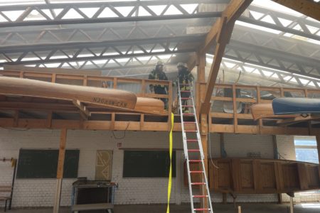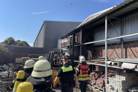 Auf dem Gelände der Conerus-Schule in Norden ist am Dienstagmittag ein Feuer ausgebrochen. Direkt an der Tiefbauhalle der Berufsschule brannte ein Lagerregal für Baumaterialien. Anwohner hatten zunächst Rauch am Rande des Schulgeländes aufsteigen sehen und einen Notruf abgesetzt. Weiterhin informierten sie die Schule über den Brand.