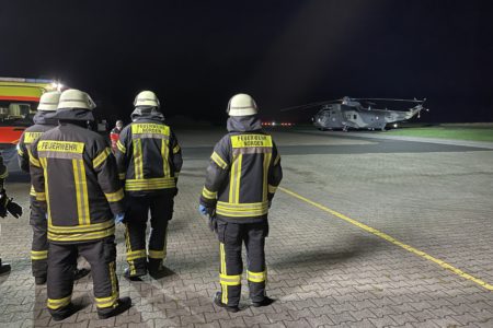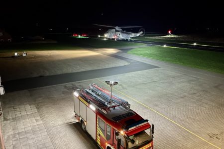 Zur Unterstützung eines Luftrettungseinsatzes von der Insel Juist zum Krankenhaus Aurich ist die Freiwillige Feuerwehr Norden in der Nacht zu Sonnabend gegen Mitternacht ausgerückt. Ein verletzte Frau musste in der Nacht mit einem Hubschrauber von der Insel transportiert werden. Da sich die regionalen nachtflugtauglichen Rettungshubschrauber wegen der Wetterlage abgemeldet hatten, kam ein Mehrzweckhubschrauber der Marine vom Typ Sea King zum Einsatz. Es Dieser flog zunächst von seiner momentan Basis am Fliegerhorst Hohn in Schleswig-Holstein zum Flugplatz Norden-Norddeich. Die Feuerwehr schaltete dort die Nachtflugbefeuerung der Start- und Landebahn ein und leuchte einen Landeplatz aus.
